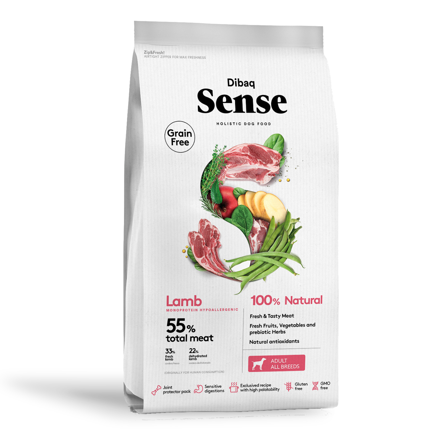 Свежее мясо ягненка 33%, дегидрированное мясо ягненка 25%, очищенный горох, картофель, куриный жир, свекольная пульпа, гидролизованная печень ягненка, свежие овощи и фрукты 4% (стручковая фасоль и яблоко), рожковое дерево, лососевый жир (источник омега 3 и 6 жирных кислот), минералы, комплекс для защиты суставов (хондроитин сульфат, глюкозамин сульфат и MSM), юкка, корень цикория (источник инулина-FOS), дрожжи (MOS) и травы с природными антиоксидантными свойствами (розмарин, тимьян и орегано).
